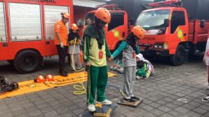 Tidak hanya melihat, para siswa juga berkesempatan mempraktikkan langsung beberapa teknik keselamatan diri. Mereka diajarkan cara melindungi diri saat terjadi keadaan darurat, sekaligus mencoba menggunakan beberapa alat penyelamatan di bawah bimbingan petugas Basarnas. Beberapa siswa dan siswi dengan antusias maju untuk mencoba, mulai dari memakai perlengkapan hingga melakukan simulasi penyelamatan sederhana. Kegiatan ini bukan hanya menambah ilmu, tetapi juga menumbuhkan rasa tanggung jawab, keberanian, dan kepedulian untuk membantu sesama. Sebuah pembelajaran nyata di luar kelas yang penuh makna dan menginspirasi!